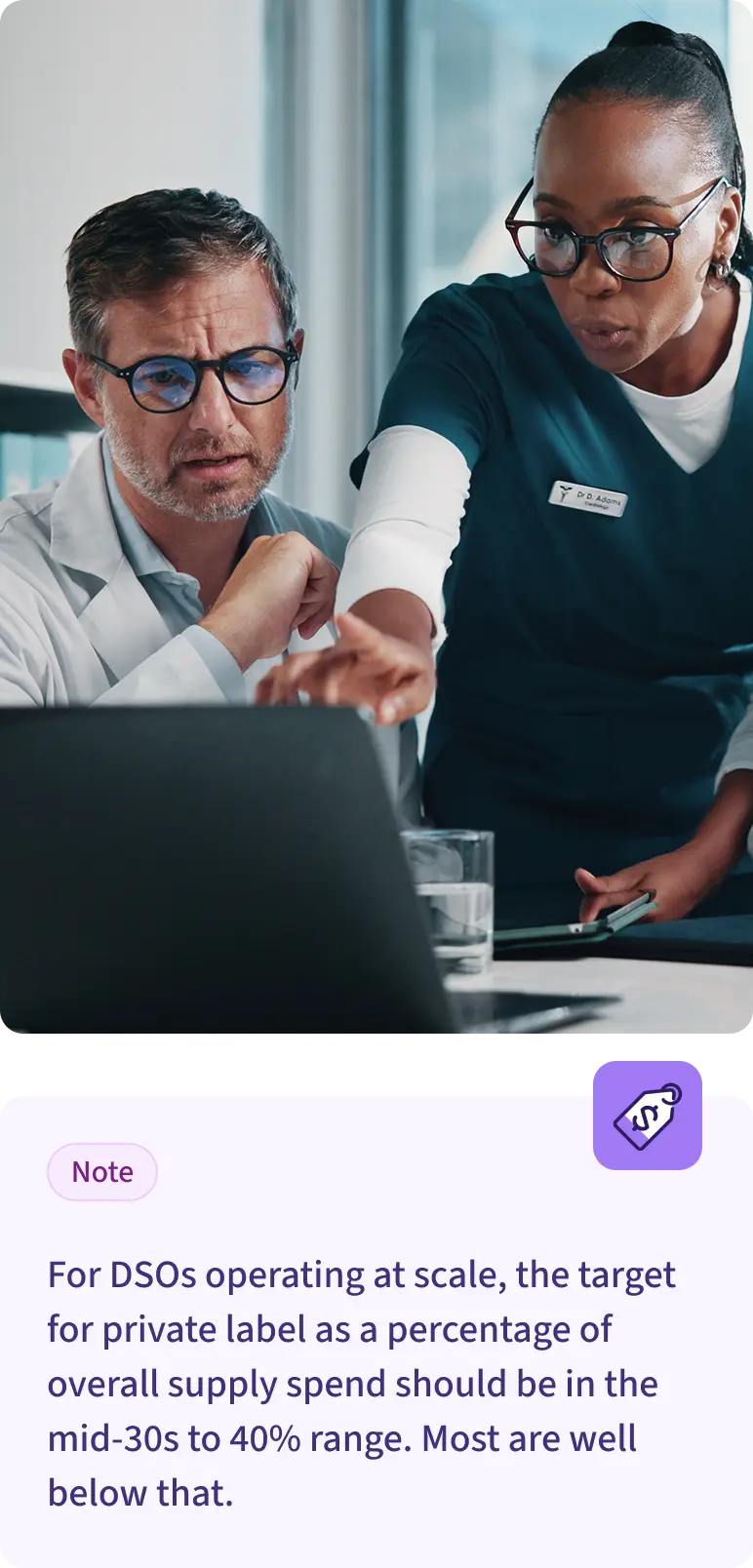 For DSOs operating at scale, the target for private label as a percentage of overall supply spend should be in the mid-30s to 40% range. Most are well below that.