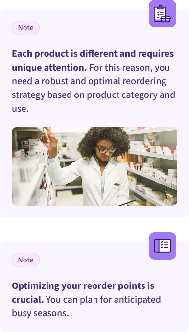 Each product is different and requires unique attention. For this reason, you need a robust and optimal reordering strategy based on product category and use.